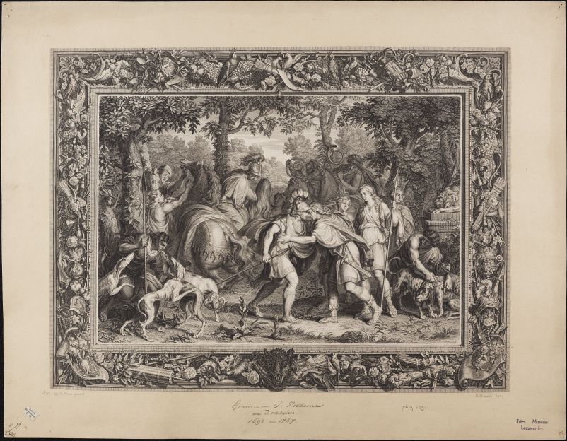 Afdruk (diepdruk) van een metalen plaat waarin met een burijn een voorstelling is gestoken. Onder druk verschijnt de ingepoetste inkt in de verdiepte lijnen als een voorstelling op het papier. Een gravure kan zijn ingekleurd nadat deze is gedrukt. https://data.cultureelerfgoed.nl/term/id/cht/0b751220-3066-47af-b136-3a7ecde465e4