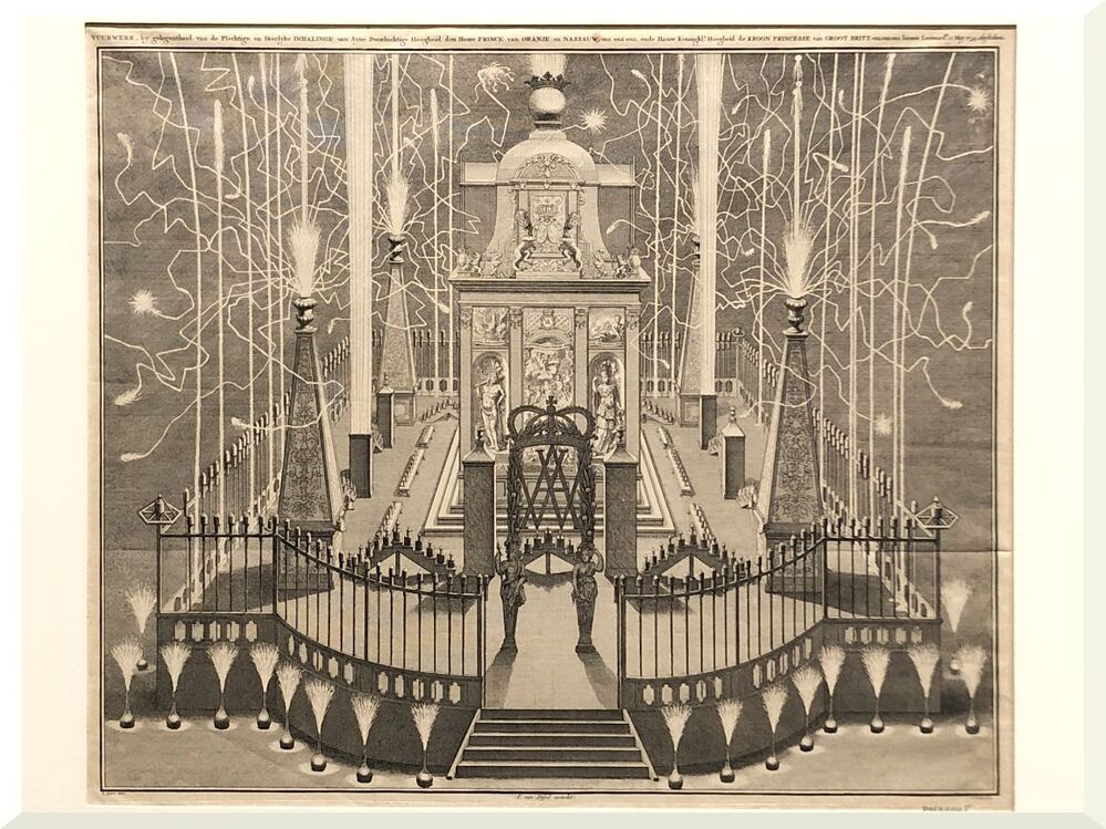 Vuurwerk bij de intocht van Prins Willem IV en gemalin op 11 mei 1734