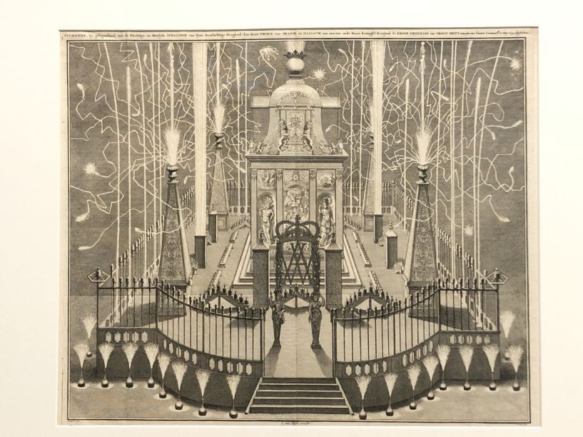 Vuurwerk bij de intocht van Prins Willem IV en gemalin op 11 mei 1734 in Leeuwarden