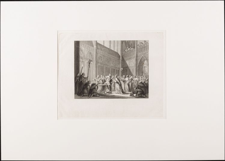 Afdruk (diepdruk) van een metalen plaat waarin met een burijn een voorstelling is gestoken. Onder druk verschijnt de ingepoetste inkt in de verdiepte lijnen als een voorstelling op het papier. Een gravure kan zijn ingekleurd nadat deze is gedrukt. https://data.cultureelerfgoed.nl/term/id/cht/0b751220-3066-47af-b136-3a7ecde465e4