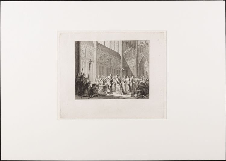 Afdruk (diepdruk) van een metalen plaat waarin met een burijn een voorstelling is gestoken. Onder druk verschijnt de ingepoetste inkt in de verdiepte lijnen als een voorstelling op het papier. Een gravure kan zijn ingekleurd nadat deze is gedrukt. https://data.cultureelerfgoed.nl/term/id/cht/0b751220-3066-47af-b136-3a7ecde465e4
