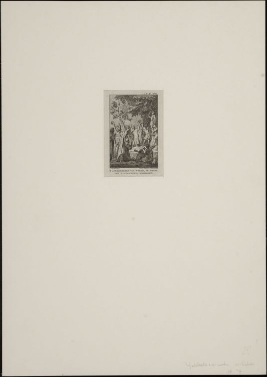 Afdruk (diepdruk) van een metalen plaat waarin met een burijn een voorstelling is gestoken. Onder druk verschijnt de ingepoetste inkt in de verdiepte lijnen als een voorstelling op het papier. Een gravure kan zijn ingekleurd nadat deze is gedrukt. https://data.cultureelerfgoed.nl/term/id/cht/0b751220-3066-47af-b136-3a7ecde465e4