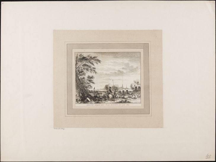 Afdruk (diepdruk) van een metalen plaat waarin met een burijn een voorstelling is gestoken. Onder druk verschijnt de ingepoetste inkt in de verdiepte lijnen als een voorstelling op het papier. Een gravure kan zijn ingekleurd nadat deze is gedrukt. https://data.cultureelerfgoed.nl/term/id/cht/0b751220-3066-47af-b136-3a7ecde465e4