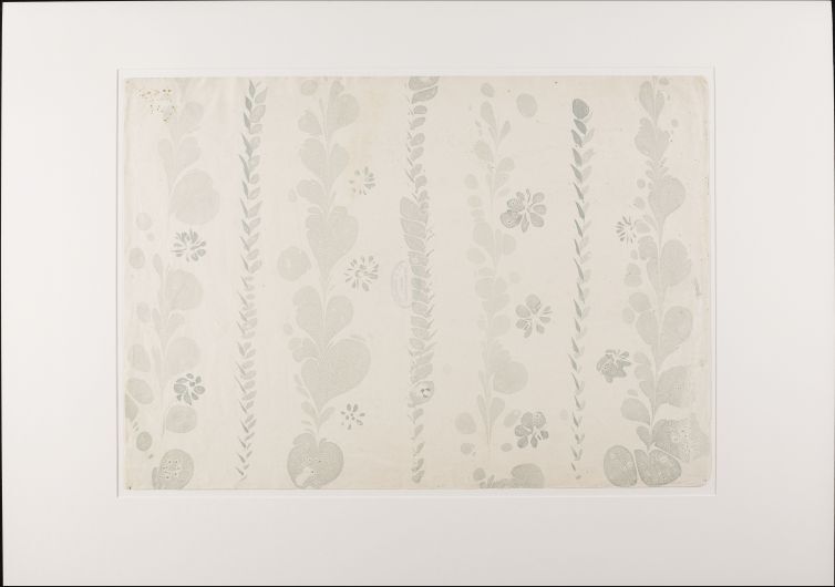 Blad met verschillende blad- en bloemmotieven, in groen