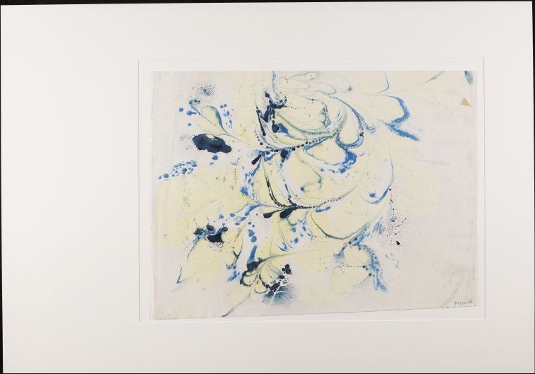 Blad met marmer in spatwerk- en kamwerktechniek, in ultramarijn en Pruisisch blauw