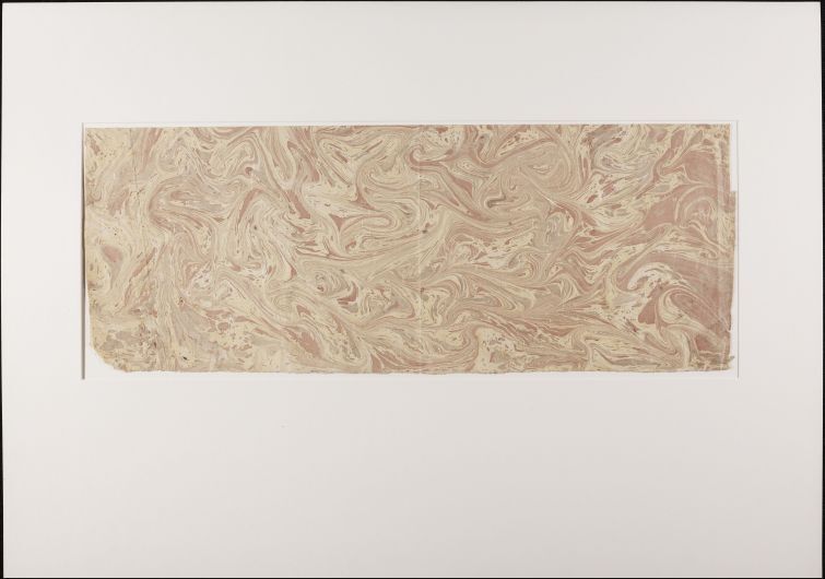 Blad met marmer in lussentechniek, in rood, grijs en geel
