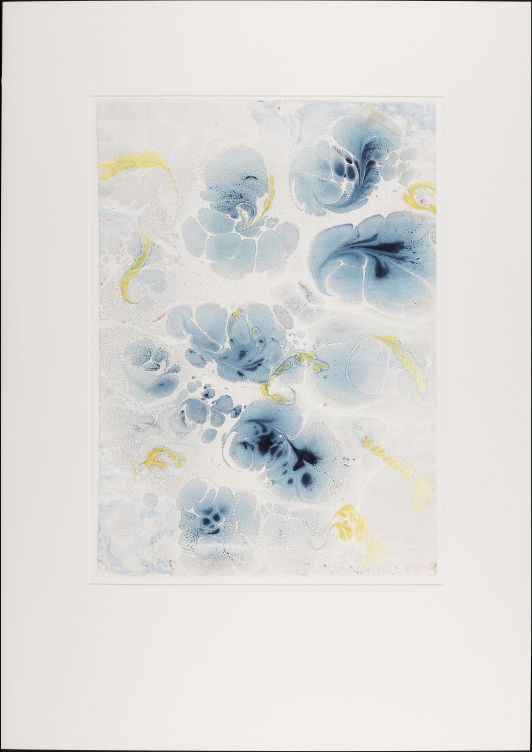 Blad met marmer in Stormontpatroon, in blauw, geel, groen en rood