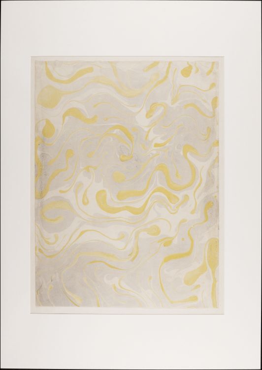 Blad met marmer, vermoedelijk in Cockerellpatroon, in paarsgrijs en geel