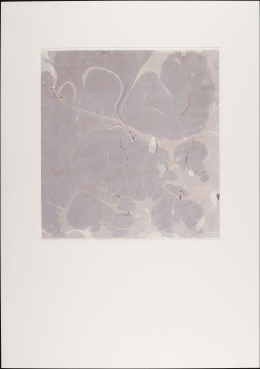 Blad met marmer in vermoedelijk Portugees vlekkenpatroon, in rood en grijsviolet
