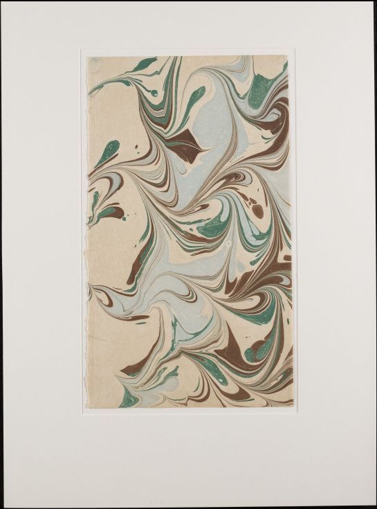 Blad met marmer in kamwerktechniek, in Cockerellpatroon, in blauw, bruin en groen