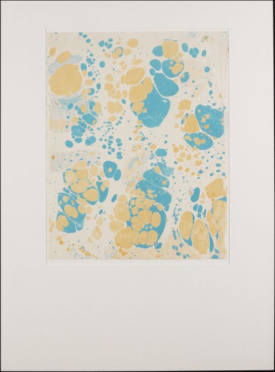 Blad met marmer in kiezelstroommarmerpatroon, in geel en blauw