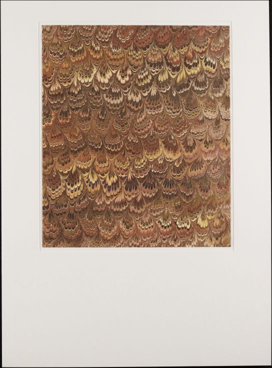 Blad met mamer in kamwerktechniek, in nonpareil/pauwenoogpatroon, in bruin, rood en geel