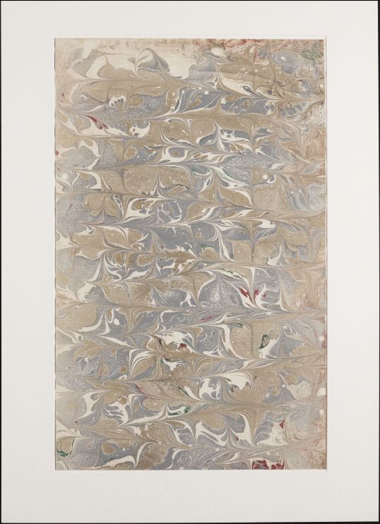 Blad met marmer in lussentechniek, in blauwgrijs, geelgrijs, rood en groen