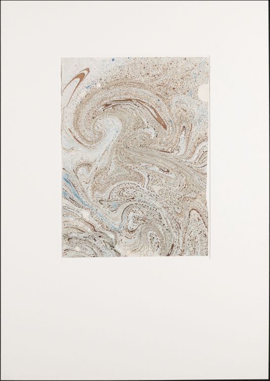 Blad met marmer in spatwerk- en kamwerktechniek, in blauw en bruin