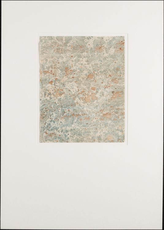 Blad met marmer in spatwerk- en kamwerktechniek, in blauw en oranje