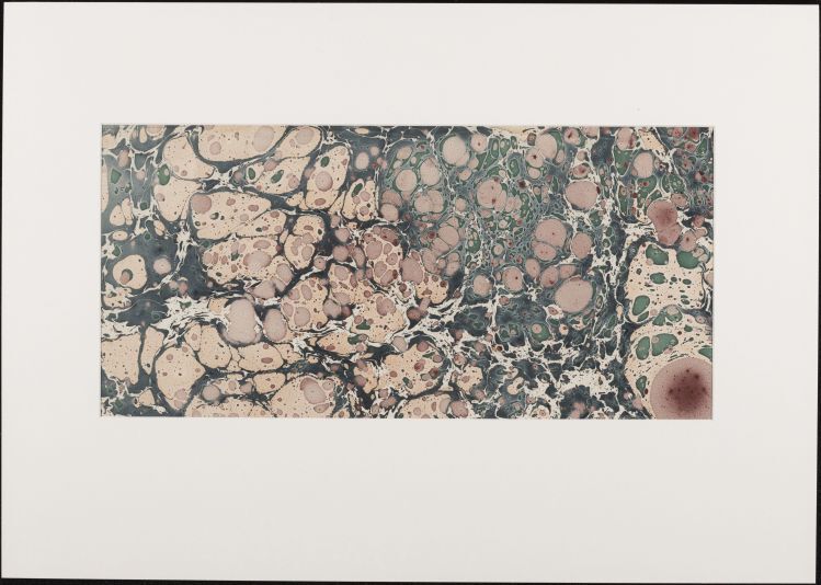Blad met marmer in Turks patroon, in blauw, oranje, rood en groen