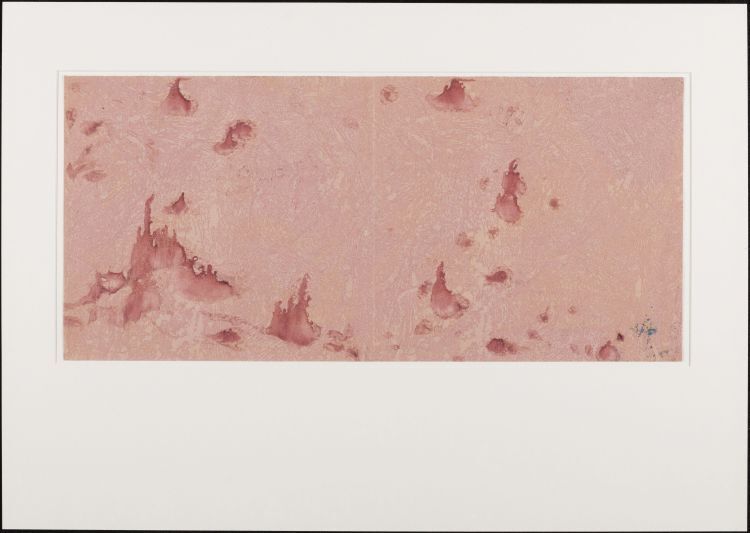 Blad met marmer in roerwerktechniek, in rood, blauw en groen