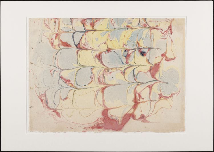 Blad met marmer in Stormontpatroon, in groen, geel rood en blauw