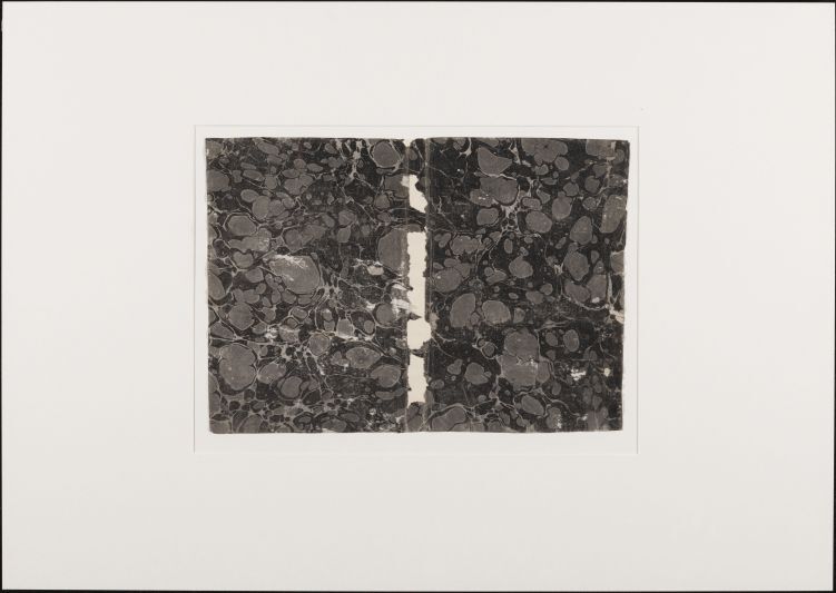 Blad met marmer in romantisch- of gebroken patroon, in zwart en grijs, oud boekomslag