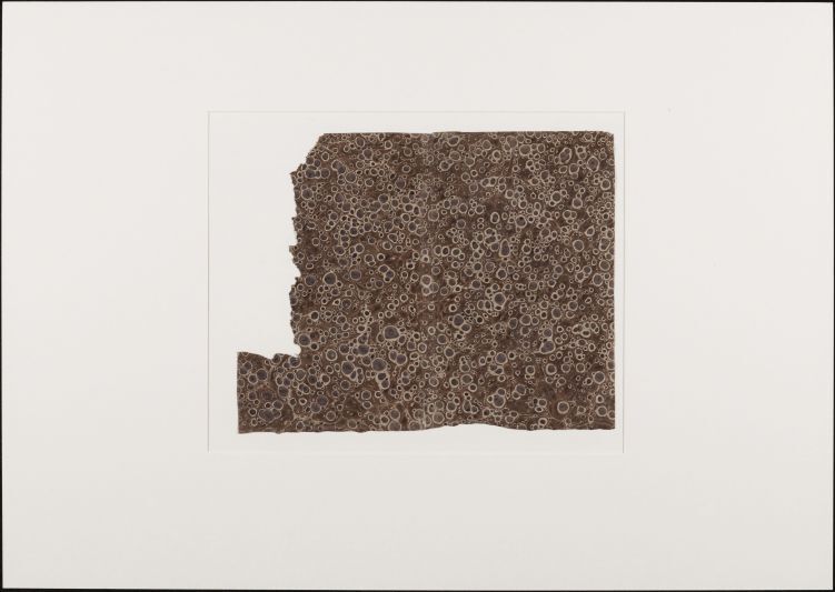Blad met marmer in klein Turks patroon, in bruin en paars, oud boekomslag