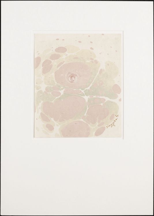 Blad met marmer in spatwerk- en roerwerktechniek, in rood, groen en geelgroen