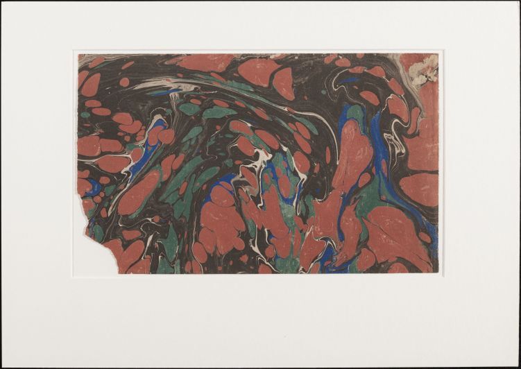 Blad met marmer in neo-Italiaans patroon, in rood, zwart, groen en blauw