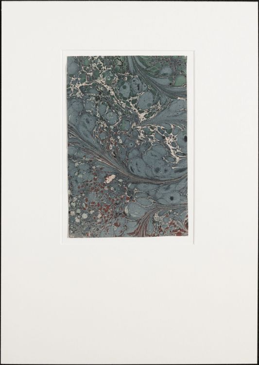 Blad met marmer in Engels spatpatroon, in blauw, groen, rood en grijs