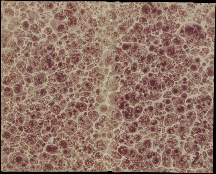 Blad met marmer in schelppatroon, in rood, oud boekomslag