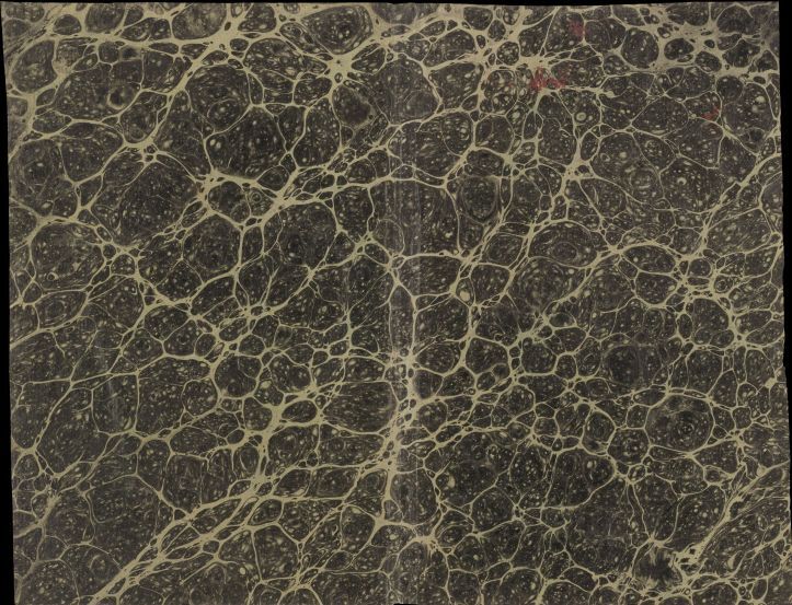 Blad met marmer in schelppatroon, in zwart, oud boekomslag