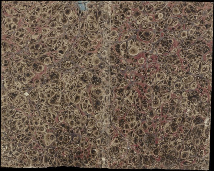 Blad met marmer in Schrottelpatroon, in bruin en rood, oud boekomslag