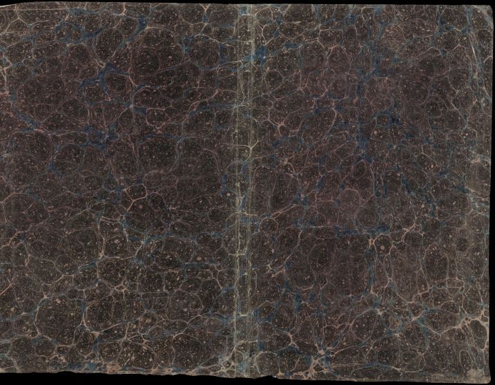 Blad met marmer in schelppatroon, in bruin, blauw en rose, oud boekomslag