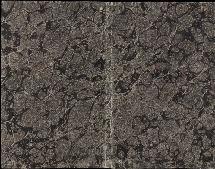Blad met marmer in Stormontpatroon, in zwart, oud boekomslag