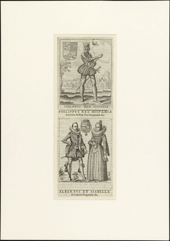 Portret van koning Filips II van Spanje, Prins Albrecht van Oostenrijk en prinses Isabella van Spanje