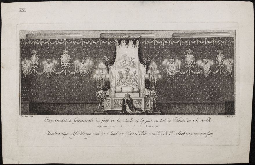 Meetkomstige afbeelding van de Saal en Praal-bed van H.K.H. vlack van voren te sien
