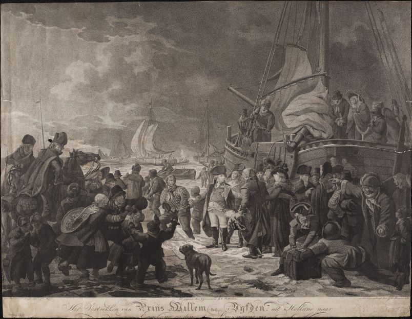 Het vertrekken van prins Willem den Vijfden uit Holland naar Engeland op den Louwmaand 1795