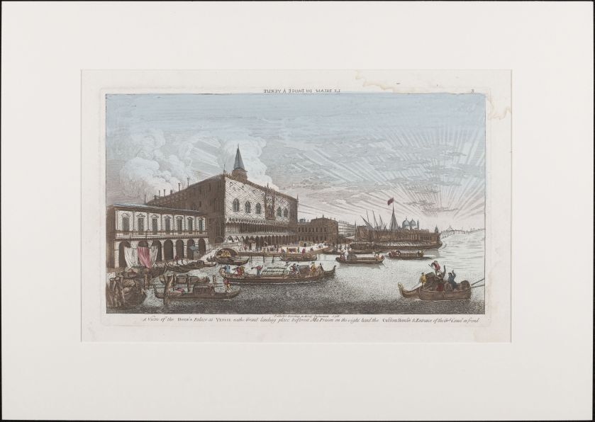 A View of the Doge's Palace at Venice on the Grand landing place boforeit Ma Prison on thi right hand the Custom House & Entrance of the Gr.d Canal in frond