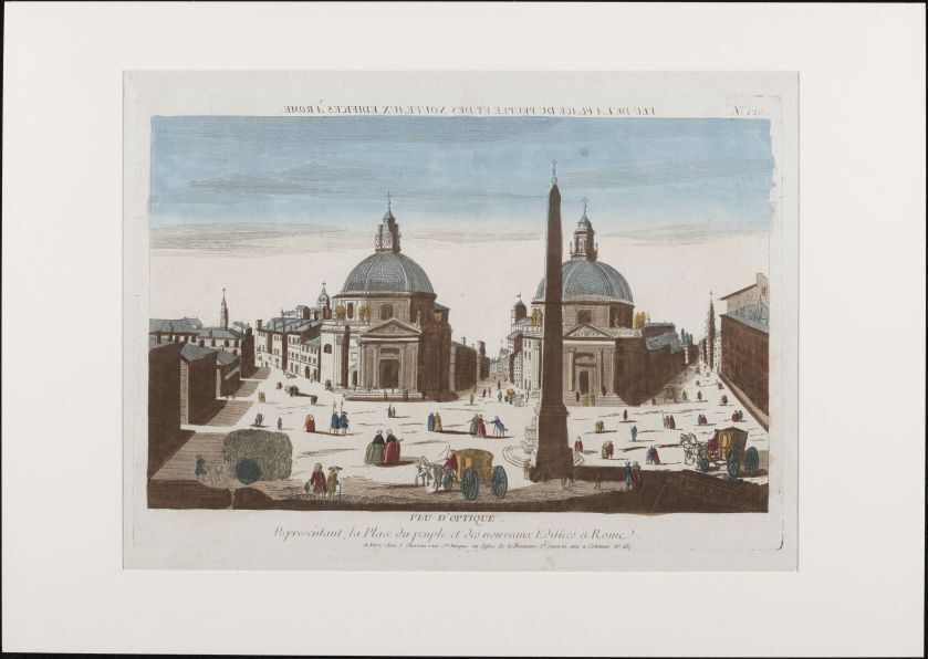 Vue d'optique Répresentant la Place du peuple et des nouveaux Edifices à Rome