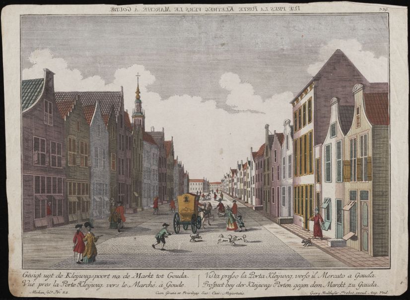Gesigt uyt de Kleijwegspoort na de Markt tot Gouda