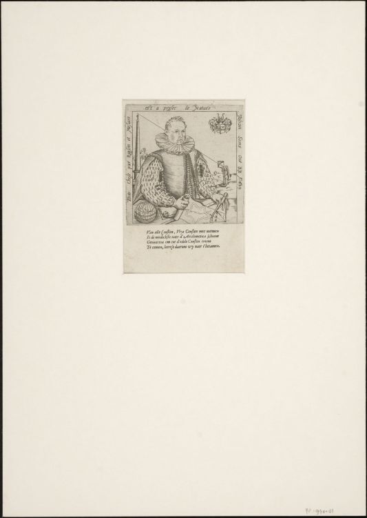 Portret van Johan Sems, zittend aan tafel met randmeetapparatuur voor zich