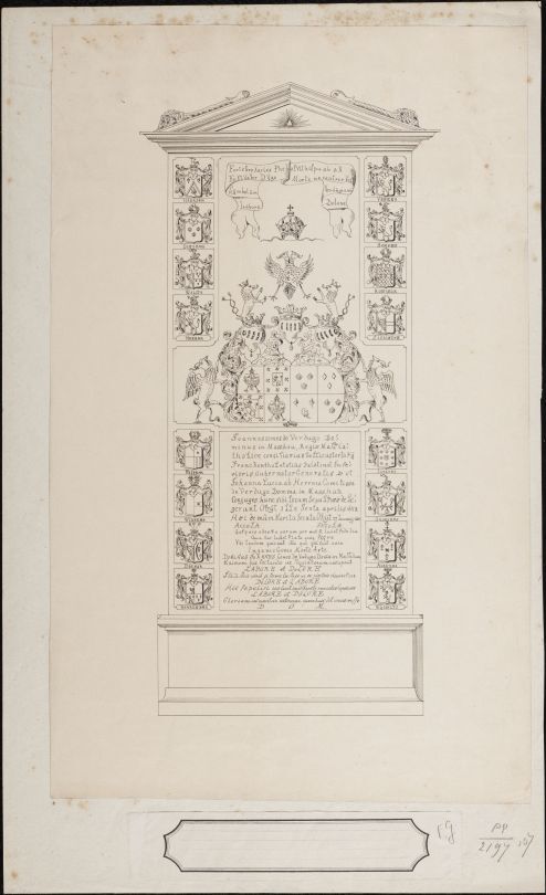 Zuil ,met aan weerzijde wapens van o.a Haersma,Iongema,Walta,Heerma