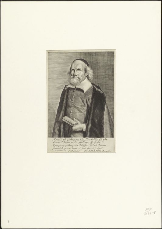 Portret van Arnoldus Verhel, in de hand een boek