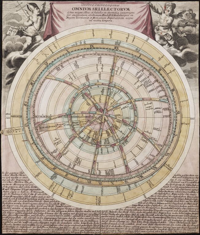 Discus Cronologicus Omnium S.R.I. Electorum: draaischijf met jaartallen en namen van vortsen van het Duitse Rijk
