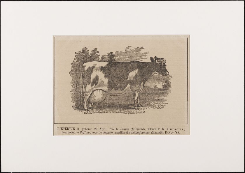 Pietertje II, geboren 25 April te Boxum (Friesland), fokker F.K. Cuperus, bekroond te Buffalo, voor de hoogste jaarlijksche melkopbrengst
