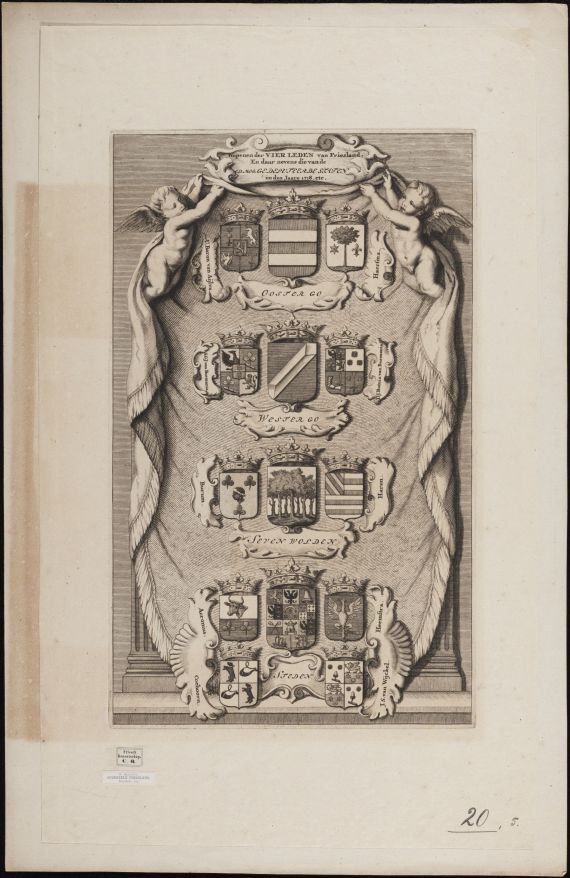 Wapenen der vier leden van Friesland en daarnevens die van de Ed. Mog. Gedeputeerde Staten