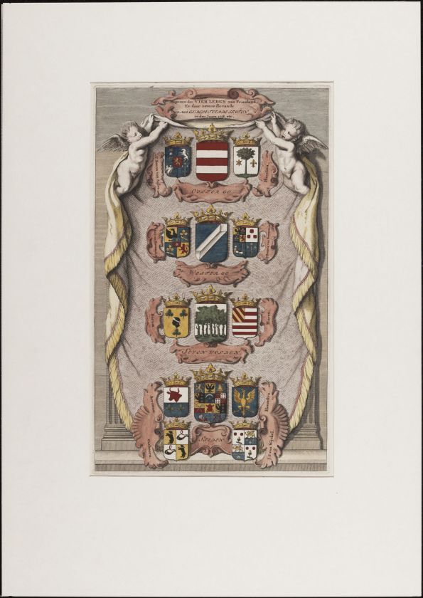 Wapenen der vier leden van Friesland en daarnevens die van de Ed. Mog. Gedeputeerde Staten