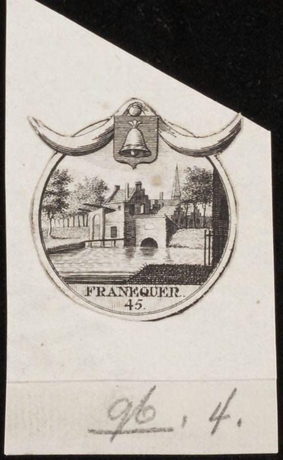 Wapen van Franeker aan medaillon met stadsgezicht