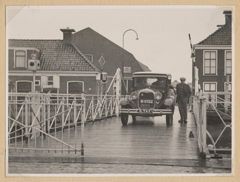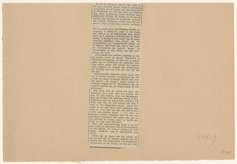 Gezicht op de brug en tol te Birdaard en krantenknipsel hierover