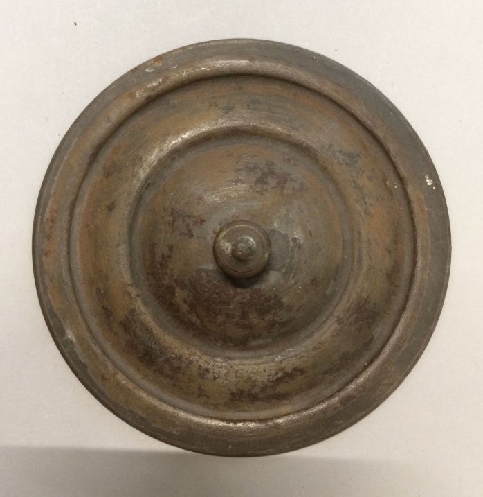 Deksel behorende bij lage ronde pan met lange steel, onderdeel van pannenset