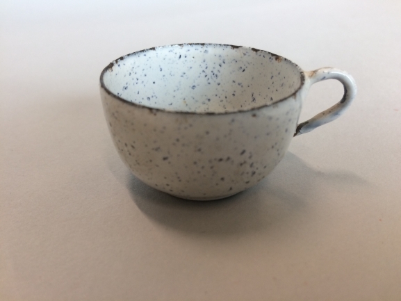 Kop, onderdeel van wit met blauw gespikkeld theeservies