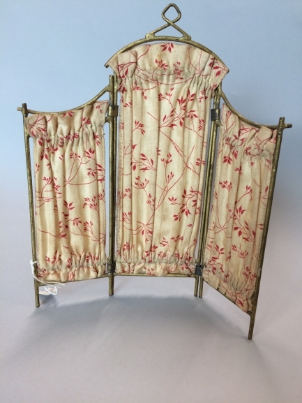 Kamerscherm voor poppenhuis met gevelkleurig frame en schermen van gebloemde stof